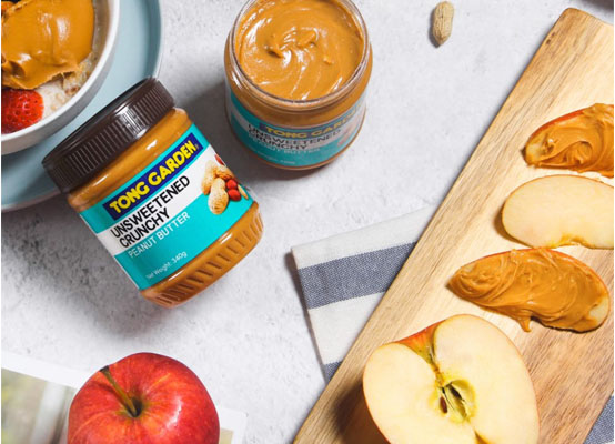 Take a spread knife, dip it into some of our unsweetened peanut butter and spread it across an apple slice! Normal peanut butter contains added sugars, oils and fats. With the Tong Garden unsweetened peanut butter, rest assured that our peanut butter is healthy and packed with a variety of vitamins.